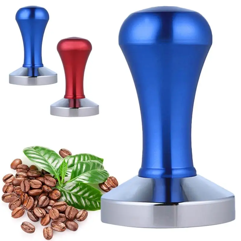 شراءمعلومات اضافية 58 ملليمتر شقة سدادة قهوة 304 قاعدة من الاستانلس ستيل مقبض ألمونيوم عبث القهوة مسحوق مطرقة مخصصة Coffeeware